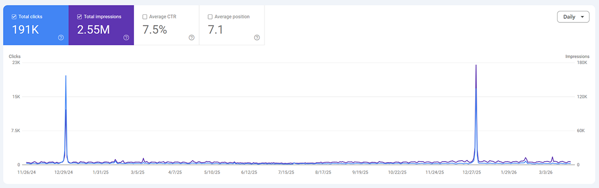 - Traffic: Reach 5,000+ organic visitors on Dec 31st (capturing 40% of the daily market).